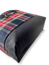 | ・生地A(表布)タータンチェック(ウー ル)1枚 ・生地B(内布)ダイヤ柄銀ラメドット模様(エステルウール)1枚 ・生地C(表布底 持ち手) 無地(綿)1枚 ・型紙プリント接着芯 5枚 ・ブランドネーム 1枚 ・作り方説明書 |