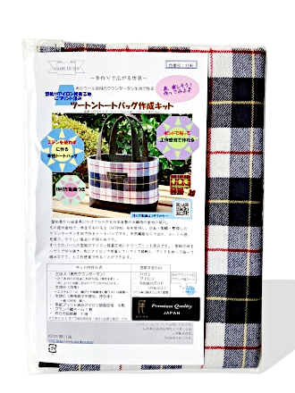表布に、ウールタータンチェック柄の生地(緯糸に再生ウール)を使用しており、柄のバリエーションが19種類もあります。天然素材ならではのふっくら感、反発力、優しい風合いで、しっかりとした生地です。 表布の底マチと持ち手の部分は、黒色の無地で、綿100%のツイル生地を使用しています。やわらかく、しなやかな風合いで光沢感があります。内布は、銀のラメ入りドット柄で、黒色のポリウールを使用しております。表布にでも使用出来るほどしっかりとした生地です。 キットの中身は生地3枚の他に、接着芯地、ブランドネーム、説明書などが入っております。(布用接着剤は、同封されておりませんので、ご自身で用意が必要となります) このキットの特色として、ミシンを使わず、工作感覚の様に、布用接着剤だけで作る事が出来ます。さらに、縫い代や切り取り線、各パーツの縫い付け位置などが、すべて接着芯地にカラープリントされているので、型紙を用意する必要がなく、生地に貼り付け、裁断すれば作り始める事が出来ます。説明書は、写真付きで分かりやすく、ハンドメイドに慣れている方はもちろん、初心者の方にも、気軽に作る事が出来ます。 お休みの日やちょっとした空き時間に、作ってみてはいかがでしょうか? お問い合わせはこちら |