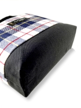 | ・生地A(表布)タータンチェック(ウー ル)1枚 ・生地B(内布)ダイヤ柄銀ラメドット模様(エステルウール)1枚 ・生地C(表布底 持ち手) 無地(綿)1枚 ・型紙プリント接着芯 5枚 ・ブランドネーム 1枚 ・作り方説明書 |