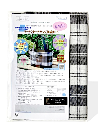 表布に、ウールタータンチェック柄の生地(緯糸に再生ウール)を使用しており、柄のバリエーションが19種類もあります。天然素材ならではのふっくら感、反発力、優しい風合いで、しっかりとした生地です。 表布の底マチと持ち手の部分は、黒色の無地で、綿100%のツイル生地を使用しています。やわらかく、しなやかな風合いで光沢感があります。内布は、銀のラメ入りドット柄で、黒色のポリウールを使用しております。表布にでも使用出来るほどしっかりとした生地です。 キットの中身は生地3枚の他に、接着芯地、ブランドネーム、説明書などが入っております。(布用接着剤は、同封されておりませんので、ご自身で用意が必要となります) このキットの特色として、ミシンを使わず、工作感覚の様に、布用接着剤だけで作る事が出来ます。さらに、縫い代や切り取り線、各パーツの縫い付け位置などが、すべて接着芯地にカラープリントされているので、型紙を用意する必要がなく、生地に貼り付け、裁断すれば作り始める事が出来ます。説明書は、写真付きで分かりやすく、ハンドメイドに慣れている方はもちろん、初心者の方にも、気軽に作る事が出来ます。 お休みの日やちょっとした空き時間に、作ってみてはいかがでしょうか? お問い合わせはこちら |