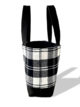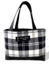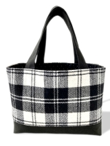 | ・生地A(表布)タータンチェック(ウー ル)1枚 ・生地B(内布)ダイヤ柄銀ラメドット模様(エステルウール)1枚 ・生地C(表布底 持ち手) 無地(綿)1枚 ・型紙プリント接着芯 5枚 ・ブランドネーム 1枚 ・作り方説明書 |