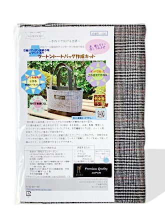 表布に、ウールタータンチェック柄の生地(緯糸に再生ウール)を使用しており、柄のバリエーションが19種類もあります。天然素材ならではのふっくら感、反発力、優しい風合いで、しっかりとした生地です。 表布の底マチと持ち手の部分は、黒色の無地で、綿100%のツイル生地を使用しています。やわらかく、しなやかな風合いで光沢感があります。内布は、銀のラメ入りドット柄で、黒色のポリウールを使用しております。表布にでも使用出来るほどしっかりとした生地です。 キットの中身は生地3枚の他に、接着芯地、ブランドネーム、説明書などが入っております。(布用接着剤は、同封されておりませんので、ご自身で用意が必要となります) このキットの特色として、ミシンを使わず、工作感覚の様に、布用接着剤だけで作る事が出来ます。さらに、縫い代や切り取り線、各パーツの縫い付け位置などが、すべて接着芯地にカラープリントされているので、型紙を用意する必要がなく、生地に貼り付け、裁断すれば作り始める事が出来ます。説明書は、写真付きで分かりやすく、ハンドメイドに慣れている方はもちろん、初心者の方にも、気軽に作る事が出来ます。 お休みの日やちょっとした空き時間に、作ってみてはいかがでしょうか? お問い合わせはこちら |