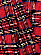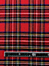 当社オリジナルの生地です。ウール素材のタータンチェック柄で、経糸に毛羽が少なく、滑らかで光沢感のあるウール100%の梳毛糸を、よこ糸に毛羽立ちがあり、ふわふわしていて保湿性が高く、環境を意識した再生ウールの毛七(ウール70%)の紡毛糸を使用しております。柔らかく優しい風合いをしています。柄も豊富で、19種類あります。