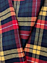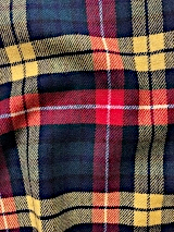 当社オリジナルの生地です。ウール素材のタータンチェック柄で、経糸に毛羽が少なく、滑らかで光沢感のあるウール100%の梳毛糸を、よこ糸に毛羽立ちがあり、ふわふわしていて保湿性が高く、環境を意識した再生ウールの毛七(ウール70%)の紡毛糸を使用しております。柔らかく優しい風合いをしています。柄も豊富で、19種類あります。