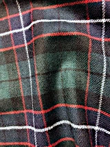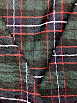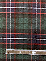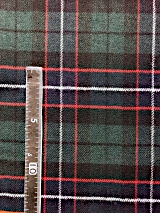当社オリジナルの生地です。ウール素材のタータンチェック柄で、経糸に毛羽が少なく、滑らかで光沢感のあるウール100%の梳毛糸を、よこ糸に毛羽立ちがあり、ふわふわしていて保湿性が高く、環境を意識した再生ウールの毛七(ウール70%)の紡毛糸を使用しております。柔らかく優しい風合いをしています。柄も豊富で、19種類あります。