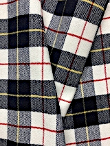 当社オリジナルの生地です。ウール素材のタータンチェック柄で、経糸に毛羽が少なく、滑らかで光沢感のあるウール100%の梳毛糸を、よこ糸に毛羽立ちがあり、ふわふわしていて保湿性が高く、環境を意識した再生ウールの毛七(ウール70%)の紡毛糸を使用しております。柔らかく優しい風合いをしています。柄も豊富で、19種類あります。