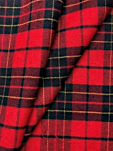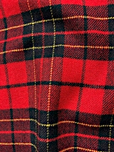 当社オリジナルの生地です。ウール素材のタータンチェック柄で、経糸に毛羽が少なく、滑らかで光沢感のあるウール100%の梳毛糸を、よこ糸に毛羽立ちがあり、ふわふわしていて保湿性が高く、環境を意識した再生ウールの毛七(ウール70%)の紡毛糸を使用しております。柔らかく優しい風合いをしています。柄も豊富で、19種類あります。