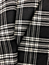 当社オリジナルの生地です。ウール素材のタータンチェック柄で、経糸に毛羽が少なく、滑らかで光沢感のあるウール100%の梳毛糸を、よこ糸に毛羽立ちがあり、ふわふわしていて保湿性が高く、環境を意識した再生ウールの毛七(ウール70%)の紡毛糸を使用しております。柔らかく優しい風合いをしています。柄も豊富で、19種類あります。