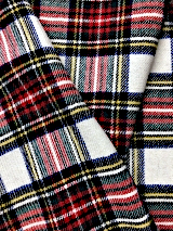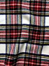 当社オリジナルの生地です。ウール素材のタータンチェック柄で、経糸に毛羽が少なく、滑らかで光沢感のあるウール100%の梳毛糸を、よこ糸に毛羽立ちがあり、ふわふわしていて保湿性が高く、環境を意識した再生ウールの毛七(ウール70%)の紡毛糸を使用しております。柔らかく優しい風合いをしています。柄も豊富で、19種類あります。