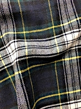 当社オリジナルの生地です。ウール素材のタータンチェック柄で、経糸に毛羽が少なく、滑らかで光沢感のあるウール100%の梳毛糸を、よこ糸に毛羽立ちがあり、ふわふわしていて保湿性が高く、環境を意識した再生ウールの毛七(ウール70%)の紡毛糸を使用しております。柔らかく優しい風合いをしています。柄も豊富で、19種類あります。