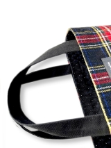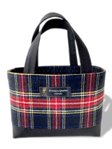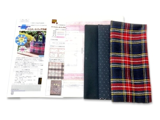 | ・生地A(表布)タータンチェック(ウー ル)1枚 ・生地B(内布)ダイヤ柄銀ラメドット模様(エステルウール)1枚 ・生地C(表布底 持ち手) 無地(綿)1枚 ・型紙プリント接着芯 5枚 ・ブランドネーム 1枚 ・作り方説明書 |