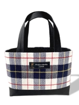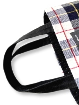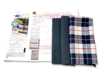 | ・生地A(表布)タータンチェック(ウー ル)1枚 ・生地B(内布)ダイヤ柄銀ラメドット模様(エステルウール)1枚 ・生地C(表布底 持ち手) 無地(綿)1枚 ・型紙プリント接着芯 5枚 ・ブランドネーム 1枚 ・作り方説明書 |