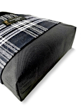 | ・生地A(表布)タータンチェック(ウー ル)1枚 ・生地B(内布)ダイヤ柄銀ラメドット模様(エステルウール)1枚 ・生地C(表布底 持ち手) 無地(綿)1枚 ・型紙プリント接着芯 5枚 ・ブランドネーム 1枚 ・作り方説明書 |