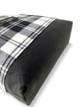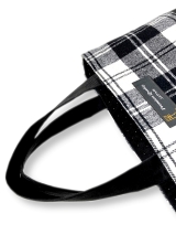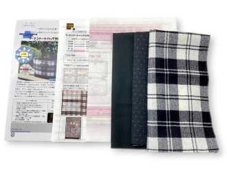 | ・生地A(表布)タータンチェック(ウー ル)1枚 ・生地B(内布)ダイヤ柄銀ラメドット模様(エステルウール)1枚 ・生地C(表布底 持ち手) 無地(綿)1枚 ・型紙プリント接着芯 5枚 ・ブランドネーム 1枚 ・作り方説明書 |
