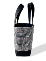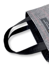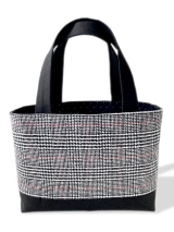 | ・生地A(表布)タータンチェック(ウー ル)1枚 ・生地B(内布)ダイヤ柄銀ラメドット模様(エステルウール)1枚 ・生地C(表布底 持ち手) 無地(綿)1枚 ・型紙プリント接着芯 5枚 ・ブランドネーム 1枚 ・作り方説明書 |