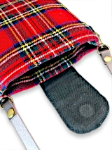 | @生地A(表布)タータンチェック (ウー ル)1枚 A生地B(内布)ダイヤ柄銀ラメドット模様(エステルウール) 1枚 B生地C(フラップ・ストラップホルダー ポケット用布)無地(綿)1枚 C型紙プリント接着芯 2枚 Dマグネットボタン 1個 Eショルダーストラップ 1個 F作り方説明書 G表紙(ブランドネーム 1枚 添付) |