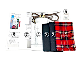 ポシェットの裏側には、鍵や小銭、カードなどが入る、黒色の綿生地の小さなポケットが付いています。 表布には、ウールタータンチェック柄の生地(緯糸に再生ウール)を使用しており、天然繊維ならではのふっくらしたやわらかい優しい風合いが持ち味です。柄のバリエーションが18種類もあります。 内布は、黒色にダイヤ柄の銀ラメ入りドット模様の生地を使用しております。表布にでも使用出来るほどしっかりとした生地です。 開閉口は、マグネットボタンで、物の出し入れがしやすい大きさになっております。 肩紐は、長さ調整が出来る幅が細い合皮ストラップです。 キットの中身は、3枚の生地の他に、接着芯地、マグネットボタン、ブランドネーム、肩紐ストラップ、説明書などが入っております。 このキットの特色として、縫い代や切り取り線、各パーツの縫い付け位置などが、すべて接着芯にカラープリントされており、型紙を用意する必要がなく、生地に貼り付け、裁断すれば作り始める事が出来ます。 説明書は、写真付きで分かりやすく、さらに、QRコードを読み込めば、作成動画も観れますので、ハンドメイドに慣れている方はもちろん、初心者の方にも、気軽に作る事が出来ます。 ちょっとしたお買い物や散歩などに、おしゃれで便利なアイテムですので、お休みの日や空き時間に作ってみては、いかがでしょうか? お問い合わせはこちら |
