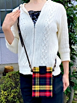 ポシェットの裏側には、鍵や小銭、カードなどが入る、黒色の綿生地の小さなポケットが付いています。 表布には、ウールタータンチェック柄の生地(緯糸に再生ウール)を使用しており、天然繊維ならではのふっくらしたやわらかい優しい風合いが持ち味です。柄のバリエーションが18種類もあります。 内布は、黒色にダイヤ柄の銀ラメ入りドット模様の生地を使用しております。表布にでも使用出来るほどしっかりとした生地です。 開閉口は、マグネットボタンで、物の出し入れがしやすい大きさになっております。 肩紐は、長さ調整が出来る幅が細い合皮ストラップです。 キットの中身は、3枚の生地の他に、接着芯地、マグネットボタン、ブランドネーム、肩紐ストラップ、説明書などが入っております。 このキットの特色として、縫い代や切り取り線、各パーツの縫い付け位置などが、すべて接着芯にカラープリントされており、型紙を用意する必要がなく、生地に貼り付け、裁断すれば作り始める事が出来ます。 説明書は、写真付きで分かりやすく、さらに、QRコードを読み込めば、作成動画も観れますので、ハンドメイドに慣れている方はもちろん、初心者の方にも、気軽に作る事が出来ます。 ちょっとしたお買い物や散歩などに、おしゃれで便利なアイテムですので、お休みの日や空き時間に作ってみては、いかがでしょうか? お問い合わせはこちら |