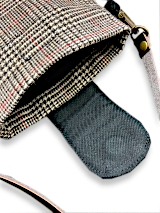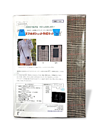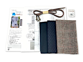 ポシェットの裏側には、鍵や小銭、カードなどが入る、黒色の綿生地の小さなポケットが付いています。 表布には、ウールタータンチェック柄の生地(緯糸に再生ウール)を使用しており、天然繊維ならではのふっくらしたやわらかい優しい風合いが持ち味です。柄のバリエーションが18種類もあります。 内布は、黒色にダイヤ柄の銀ラメ入りドット模様の生地を使用しております。表布にでも使用出来るほどしっかりとした生地です。 開閉口は、マグネットボタンで、物の出し入れがしやすい大きさになっております。 肩紐は、長さ調整が出来る幅が細い合皮ストラップです。 キットの中身は、3枚の生地の他に、接着芯地、マグネットボタン、ブランドネーム、肩紐ストラップ、説明書などが入っております。 このキットの特色として、縫い代や切り取り線、各パーツの縫い付け位置などが、すべて接着芯にカラープリントされており、型紙を用意する必要がなく、生地に貼り付け、裁断すれば作り始める事が出来ます。 説明書は、写真付きで分かりやすく、さらに、QRコードを読み込めば、作成動画も観れますので、ハンドメイドに慣れている方はもちろん、初心者の方にも、気軽に作る事が出来ます。 ちょっとしたお買い物や散歩などに、おしゃれで便利なアイテムですので、お休みの日や空き時間に作ってみては、いかがでしょうか? お問い合わせはこちら |